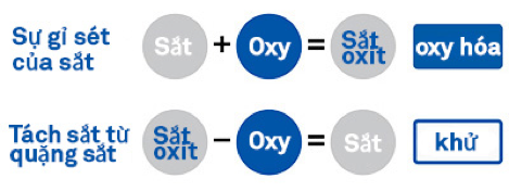 Gỉ sét xảy ra khi sắt kết hợp với oxy và trải qua quá trình oxy hóa. Quặng sắt trong tự nhiên là kết quả của quá trình oxy hóa xảy ra khi sắt tiếp xúc với không khí. Tại nhà máy sắt, oxy được tách ra từ quặng sắt để lấy sắt thông qua quá trình “khử”.