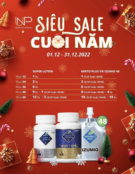 Khuyến mãi tháng 12 SUPER LUTEIN, SUPER LUTEIN MIRTO PLUS, IZUMIO có gì?