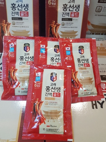 Một hộp to Korean Red Ginseng hồng Seon Saeng Drink Gold bên trong có chứa 6 hộp nhỏ, mỗi hộp nhỏ gồm 4 bịch 70ml thuận tiện cho việc sử dụng và bảo quản.