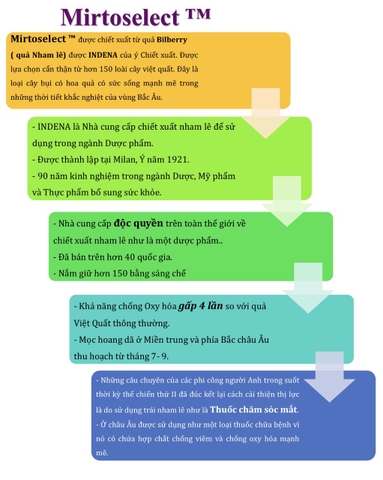 Mirtogenol® còn là sự kết hợp của 2 thành phần chống oxy hóa nổi tiếng cao cấp nhất, - Pycnogenol® và Mirtoselect. là công thức ĐỘC QUYỀN mới chống oxy hóa số 1 thế giới ™.