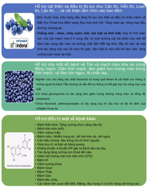 ⦿ Mirtoselect ™ được chiết xuất từ quả Bilberry ( quả Nham lê) được INDENA của ý Chiết xuất độc quyền trên thế giới.