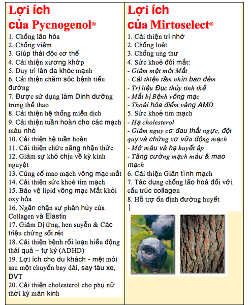 Các thành phần của Mirtogenol®: Pycnogenol® và Mirtoselect™