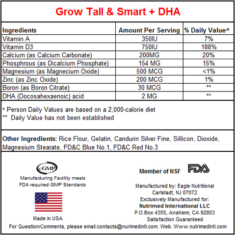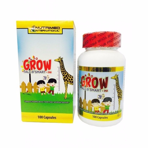 Sản phẩm Grow Tall & Smart nhãn hiệu Nutrimed: Bổ sung các vitamin (A,D), khoáng chất thiết yếu (Ca, P), DHA cho trẻ em, giúp xương răng chắc khỏe, tăng trưởng chiều cao, chống suy dinh dưỡng, hỗ trợ hoàn thiện toàn diện các chức năng cơ thể và duy trì sức khỏe.