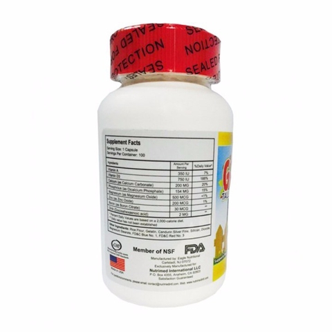 Calcium (as Calcium Carbonate) và Phosphor (as Dicalci phosphate): Calcium và phosphor là thành phần cấu tạo xương, răng của cơ thể. Bổ sung calcium và phospho cho cơ thể giúp phòng ngừa bệnh còi xương, loãng xương.