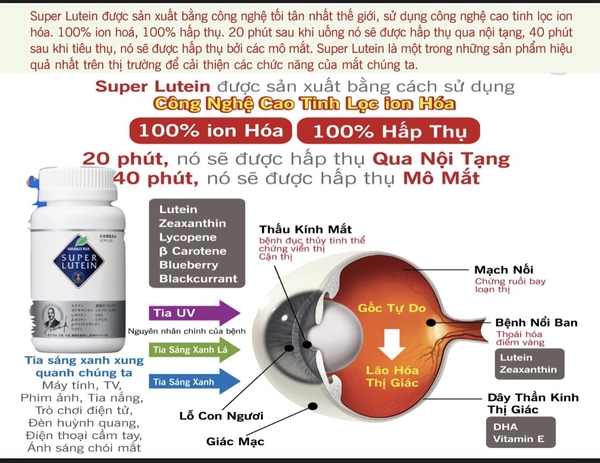 . Super Lutein " Tầm Nhìn khoẻ mạnh", sức khoẻ của con mắt là rất quan trọng đối với chúng ta.