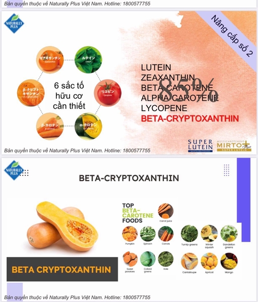 Super Lutien và super Lutein Mirto plus phiên bản mới Thành phần mới được thay thế Crocetin là carotenoid β-cryptoxanthin